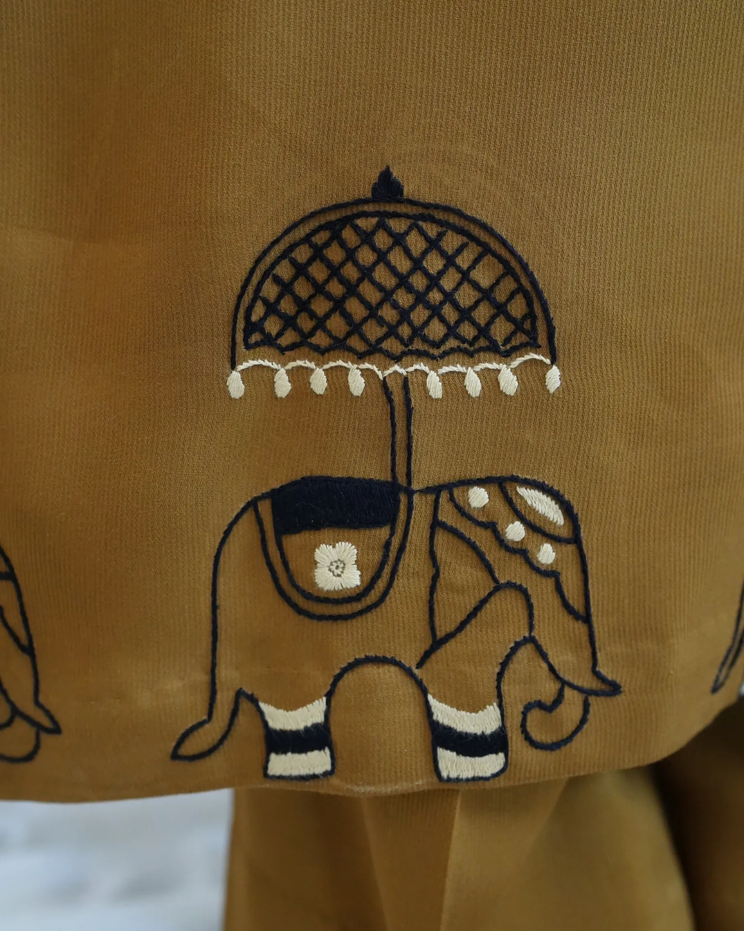 • Handcrafted Kashmiri-style elephant motifs on shirt borders